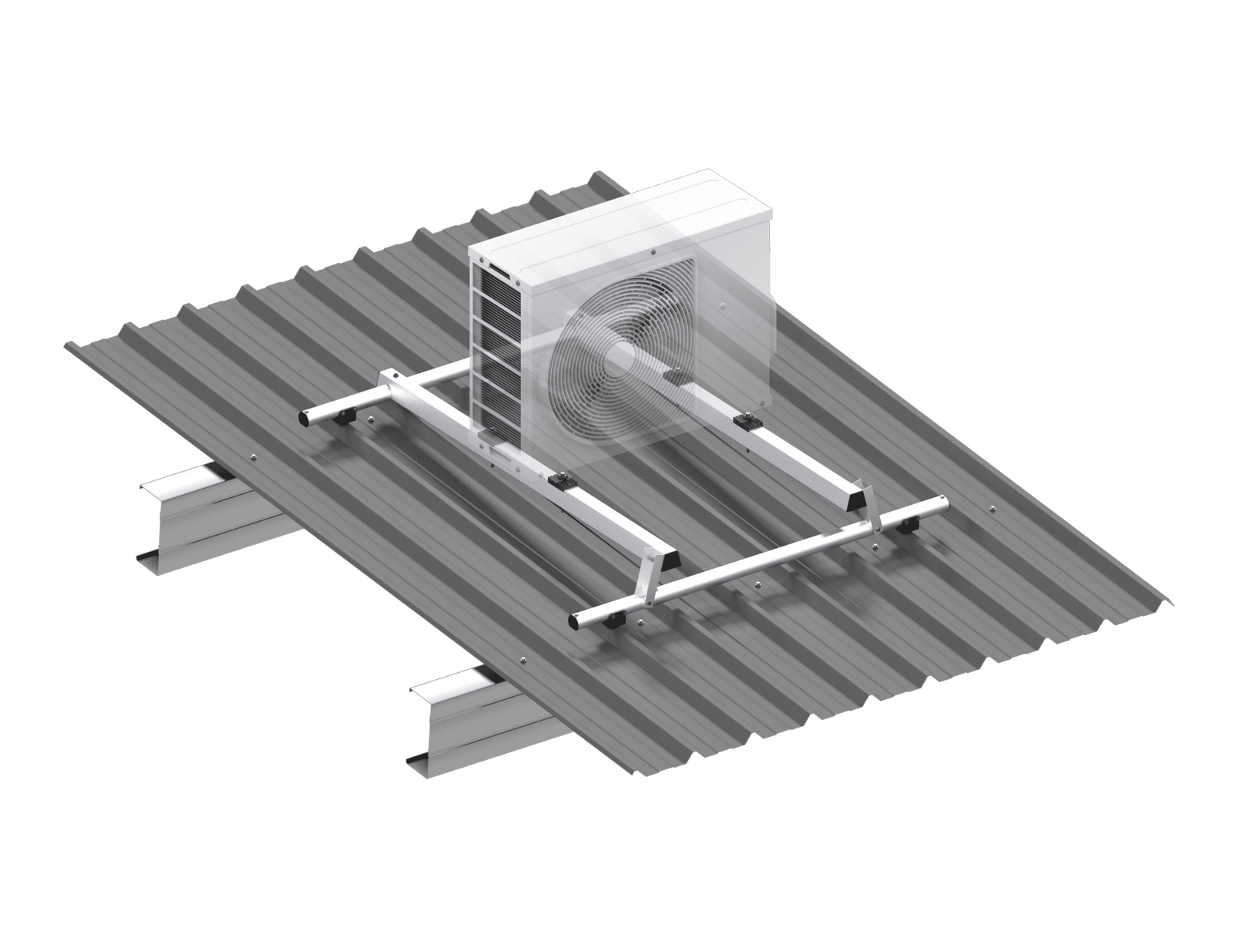 Our Condenser Mounts come as a boxed kit-set, including the specialised Monkeytoe mounting clips and fixings to ensure loads are taken down to the roof structure and not applied to the roof itself.