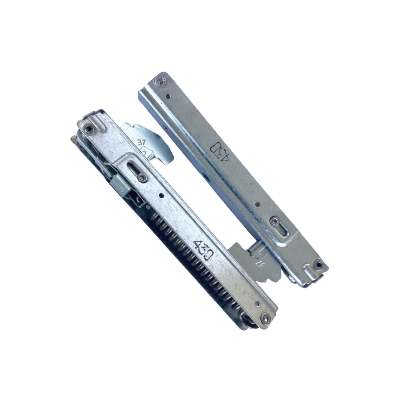 Hinge has "40" stamped on the front and "37" stamped on the side of the protruding arm. It may also have number 430 printed on the side of the hinge.