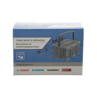 Dishwasher cutlery basket suitable for all dishwashers by Bosch New Zealand, this original spare part is an easy to replace component. Replacement of 00668270 also known as 11018806. Specially designed to slot over the plate inserts in some Bosch models. Made in Germany.