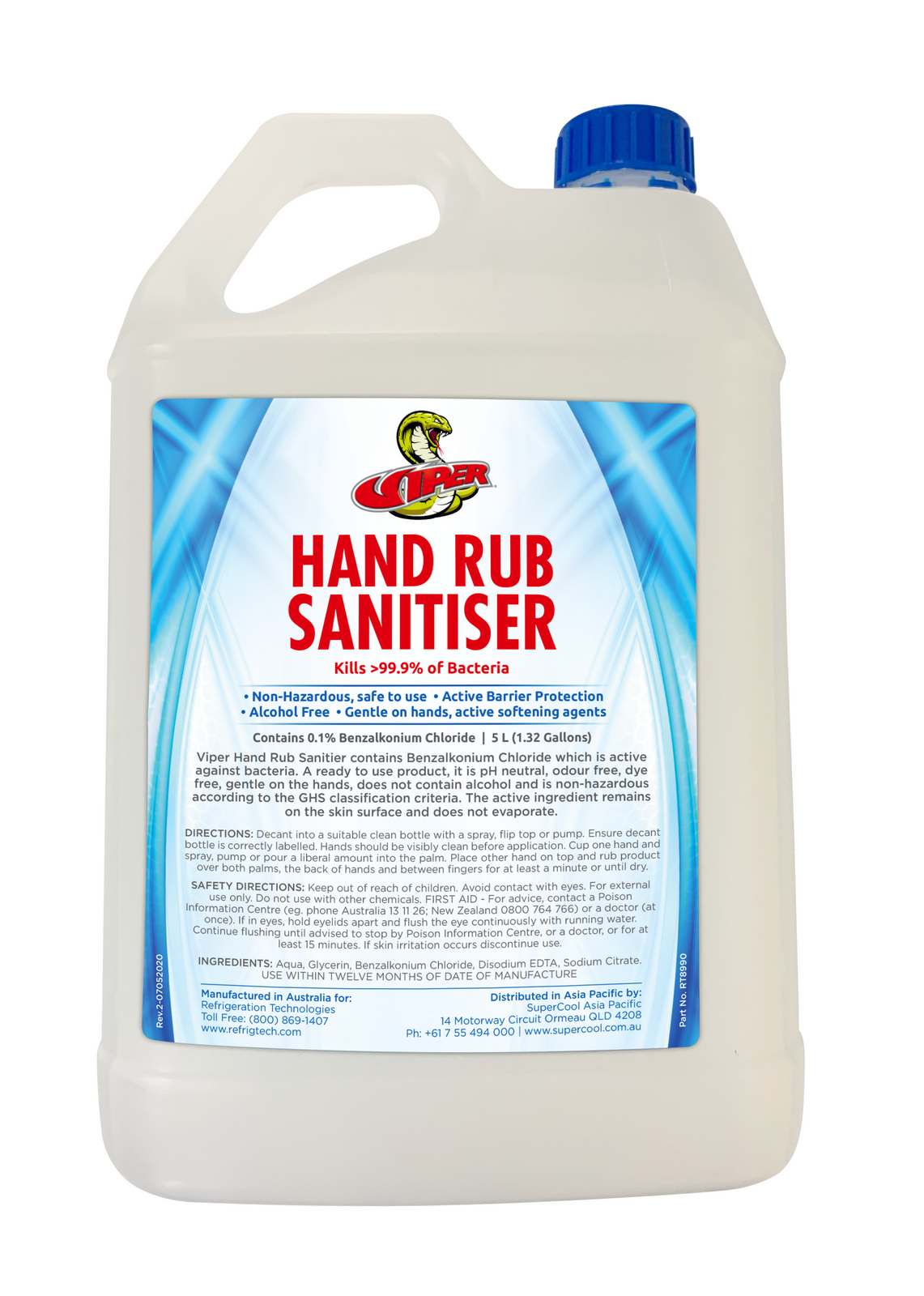Title: Chemicals - Other | Viper - Hand Rub Sanitiser | PN: RT8990