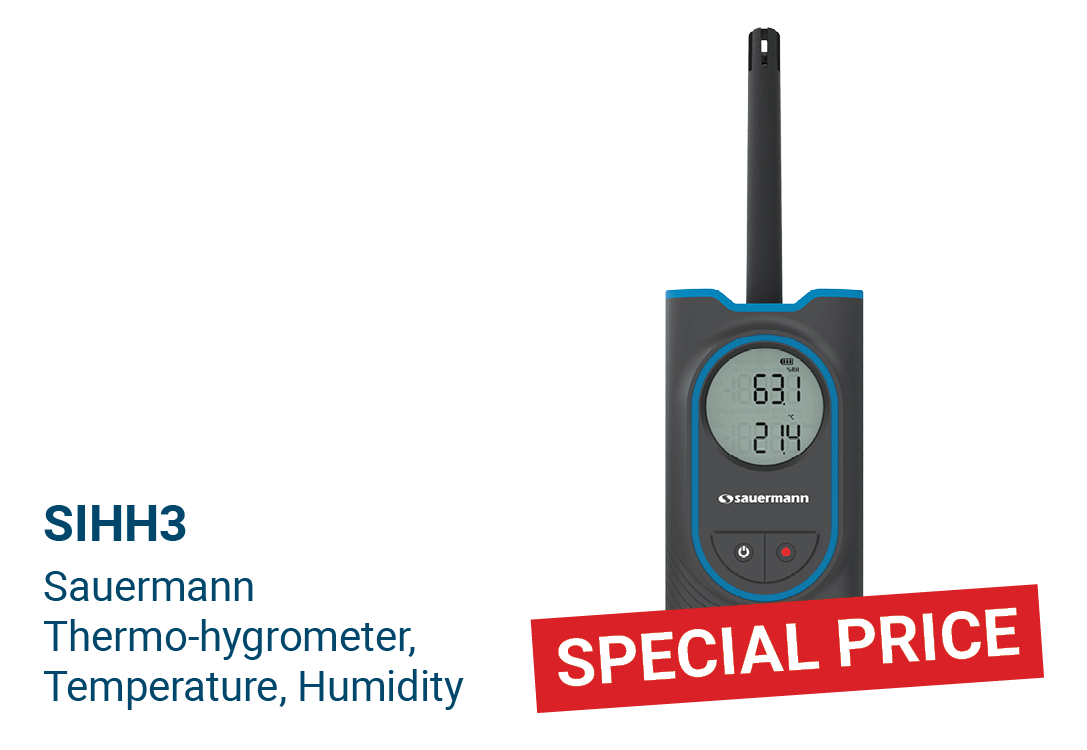 The palm-sized Sauermann Si-HH3 thermo-hygrometer easily measures relative humidity and temperature.