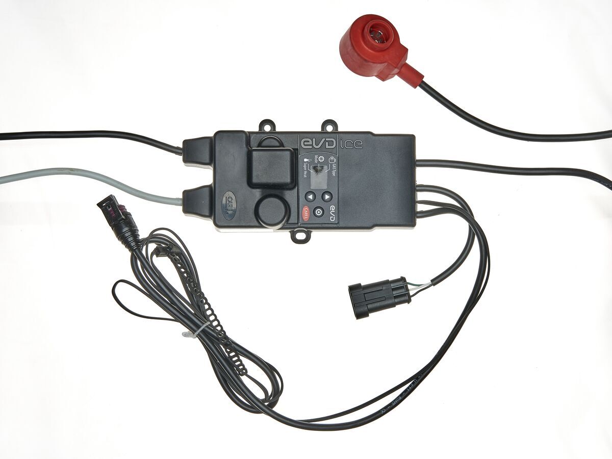 EVD ice is an electronic superheat controller for Carel unipolar expansion valves. EVD ice has been specially designed to be installed near the valve, directly on the refrigerant circuit, simplifying installation and making electronic expansion valve technology available directly on board the unit. The plastic cover material on EVD ice guarantees total protection, allowing the controller to operate in particularly difficult environmental conditions, such as low temperatures and high humidity (condensation). EVD ice can be installed directly on a unit cooler/evaporator inside a cold room. The controller is already fitted with sensors, signal and power cables: to complete the system, simply select the most suitable valve body and pressure transducer for the required cooling capacity from the compatible Carel product range. EVD ice controls refrigerant superheat and optimises refrigerant circuit efficiency. It allows considerable system flexibility, being compatible with various types of refrigerants, in applications with refrigerators and chiller/air-conditioners. It features low superheat protection (LowSH), high evaporation pressure (MOP) and low evaporation pressure (LOP) functions. The device also has a user interface that displays the instant superheat value at all times, signals any alarms, and above all can be used to set the operating parameters. When installing the controller, only three initial parameters are required to start controlling the valve in the system: - type of refrigerant - operating mode (cold room, showcase, etc.) - superheat set point. EVD ice can easily be accessed via an RS485 serial connection (Modbus protocol), for supervision of operating parameters and alarms in real time. The serial connection can also be used to set the operating parameters over a remote connection; in this case, combination with other Carel controllers is recommended (supervisors and cold room controllers).