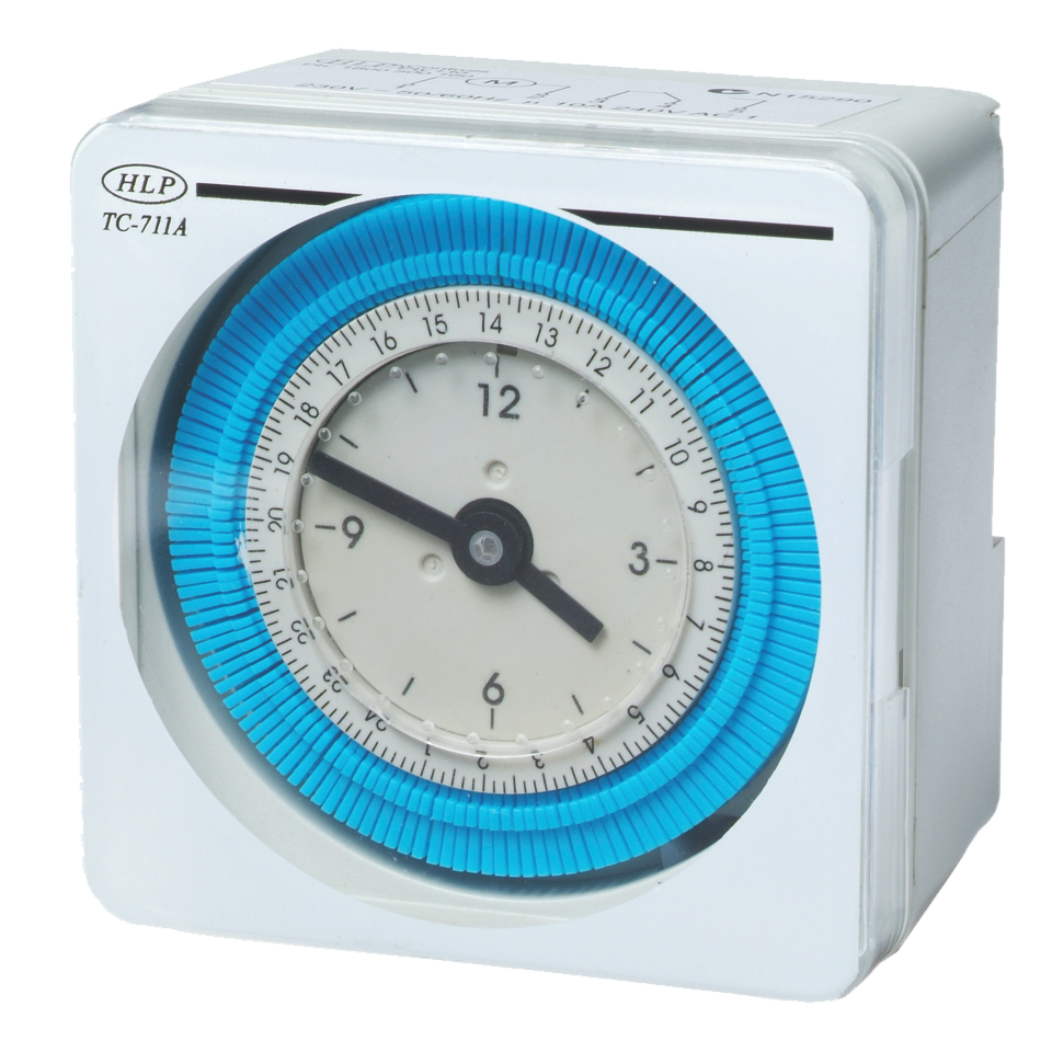 TC-711A 24 Hr Time switch, AC240 V powered, with 40 Hr Battery backup in case of power failure. Out Put contacts are Change over 16 Amps AC1.