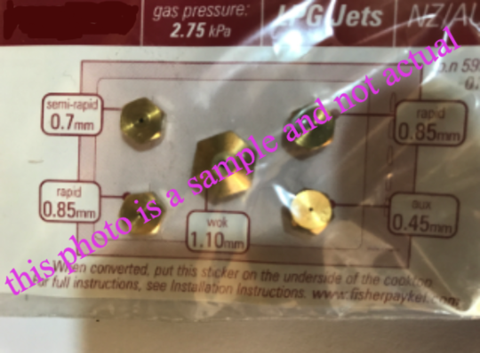 Title: Fisher Paykel Cooktop CG913T, CG912T, 80034, 87996, Lpg Nozzle Gas Jet Set