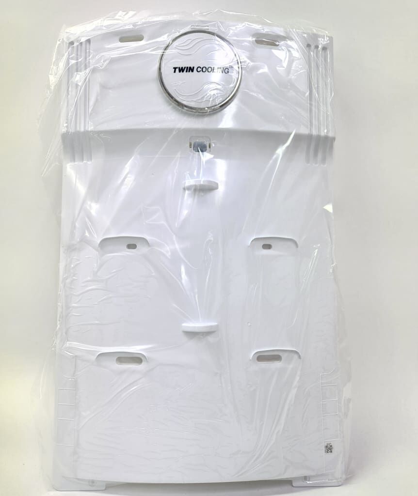 Back cover with fan motor assembly for some Samsung NZ fridge freezer appliances.