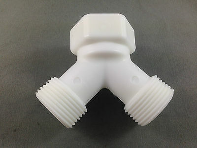 Allows two standard 1/2" washing machine or dishwasher hoses to be connected to single tap