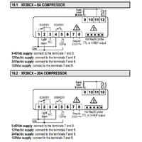 Model XR30CX, format 32 x 74 mm, is a digital thermostat with off cycle defrost designed forrefrigeration applications at normal temperature. It provides two relay outputs, one for thecompressor, the other one can be used as light, for alarm signalling or as auxiliary output.. Itis also provided with 2 NTC or PTC probe inputs, the first one for temperature control, thesecond one, optional, to connect to the HOT KEY terminals to signal the condensertemperature alarm or to display a temperature. The digital input can operate as thirdtemperature probe. It’s provided with a Real Time Clock which allows programming of up to 6daily defrost cycles, divided into holidays and workdays. A “Day and Night” function with twodifferent set points is fitted for energy savingThe HOT KEY output allows to connect the unit, by means of the external module XJ485-CX,to a network line ModBUS-RTU compatible such as the dIXEL monitoring units of X-WEBfamily. It allows to program the controller by means the HOT KEY programming keyboard.The instrument is fully configurable through special parameters that can be easilyprogrammed through the keyboard.Medium TemperatureProbe Inputs: 2 NTC / PTC Probes (1 Thermostat, 1 Condenser)Digital Input: 1 Configurable (for Alarm, Start Defrost, Aux, Door Switch, or Pressure Switch)Relay Outputs: 1 Compressor (8A, 20A optional), 1 Light or Alarm (8A)Power Supply: 240 VAC